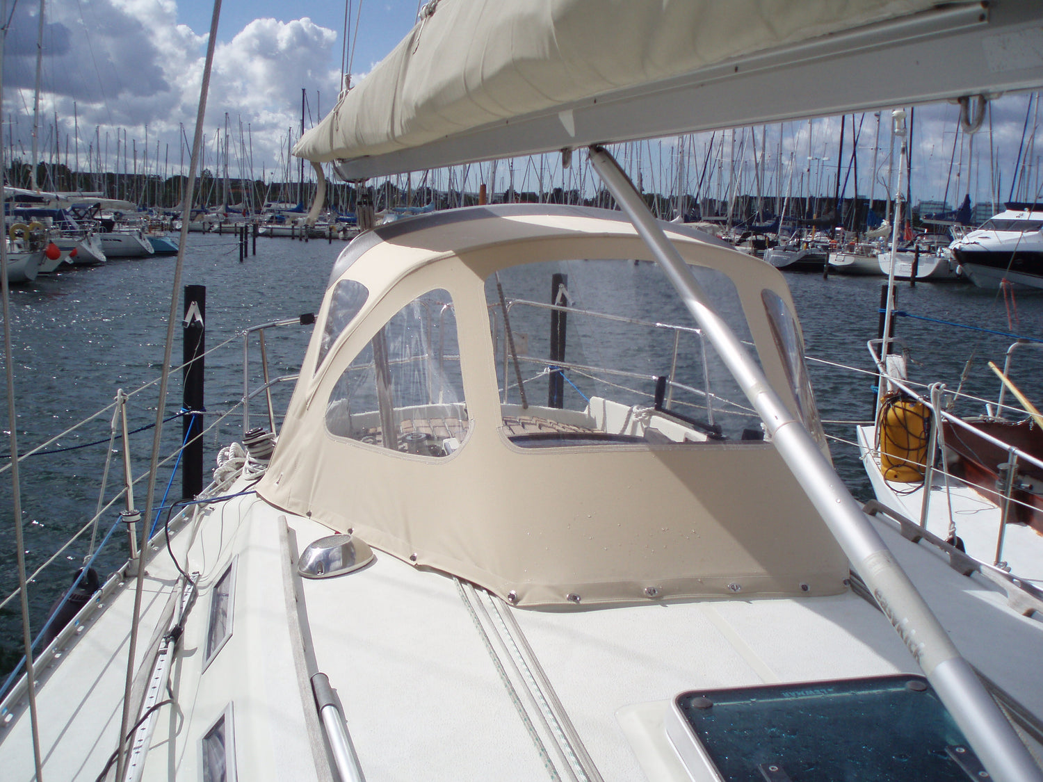 Für Bootsfabrikanten, die in Serie produzieren, wie zum Beispiel Bavaria, Hanse, Jeanneau, Beneteau, Lagoon, Dufour, Delphia oder Elan können Sie Bootsverdecke mit dazugehörigem Gestänge direkt von unserer Werkstatt bestellen. Serienproduzierte Bootsverdecke von Kapell & Annat können weltweit geliefert werden, mit Montageanleitung für Ihr neues Bootsverdeck.